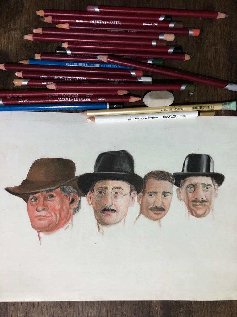 Esboco Fernando pessoa e os heteronimos mais conhecidos, Lapis pastel sobre p...