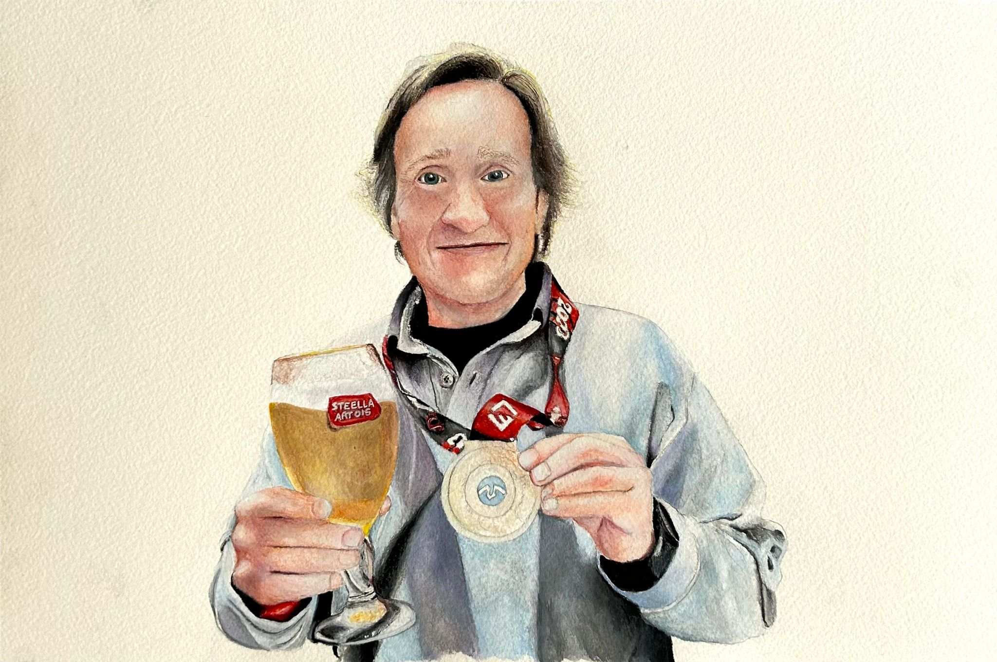 Retrato depois da maratona, Lapis de cor e aguarela sobre papel de algodao gr...