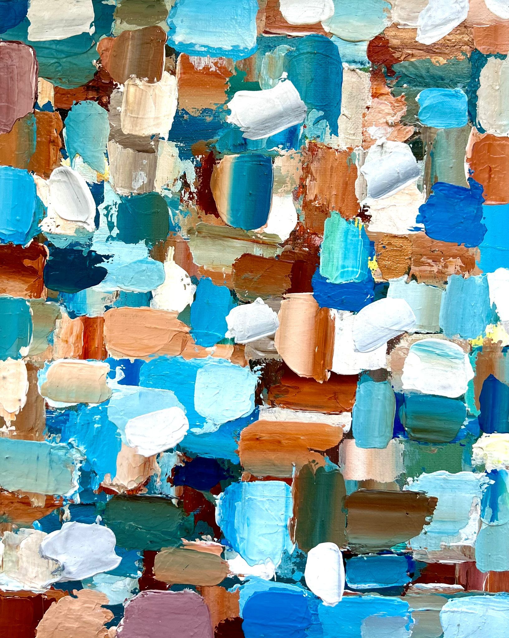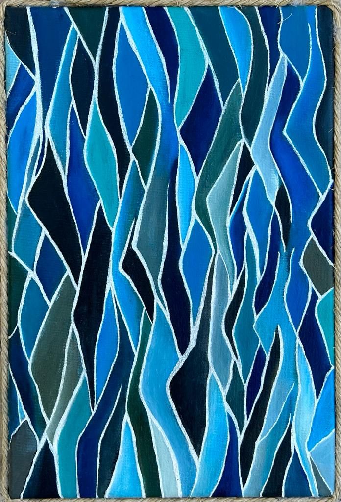 Azuis, acrílico sobre tela de algodão 280gm, moldura com corda sisal, 30x20cm