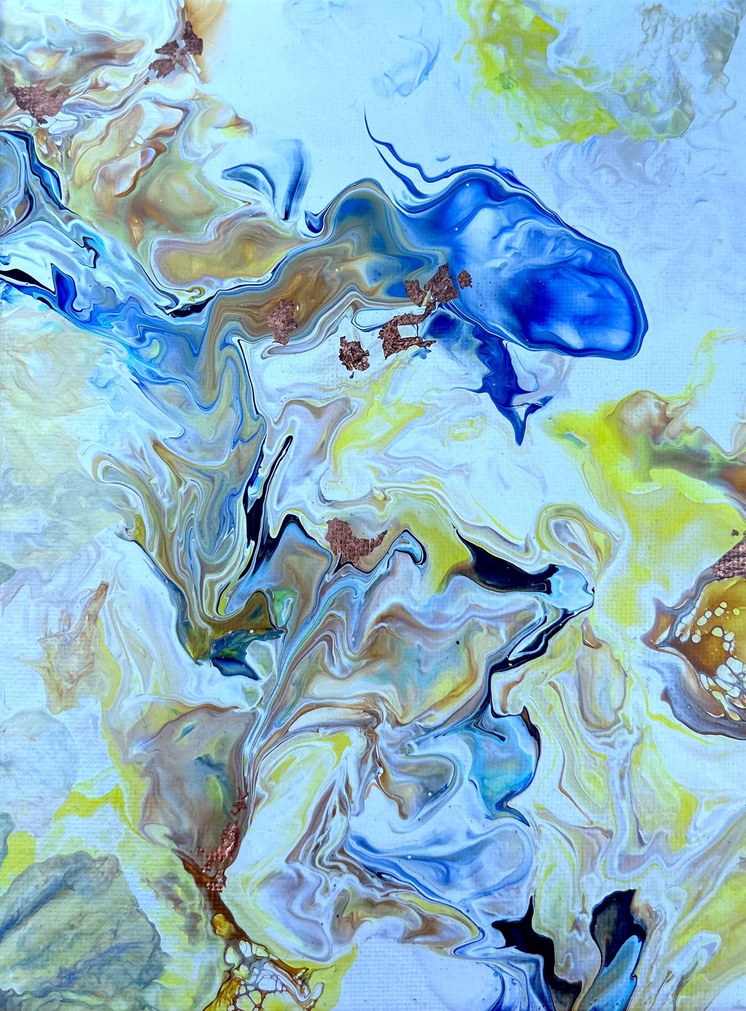 Psicose, acrílico sobre tela de algodão 280gm, técnica pouring com folha de cobre, 15x20cm