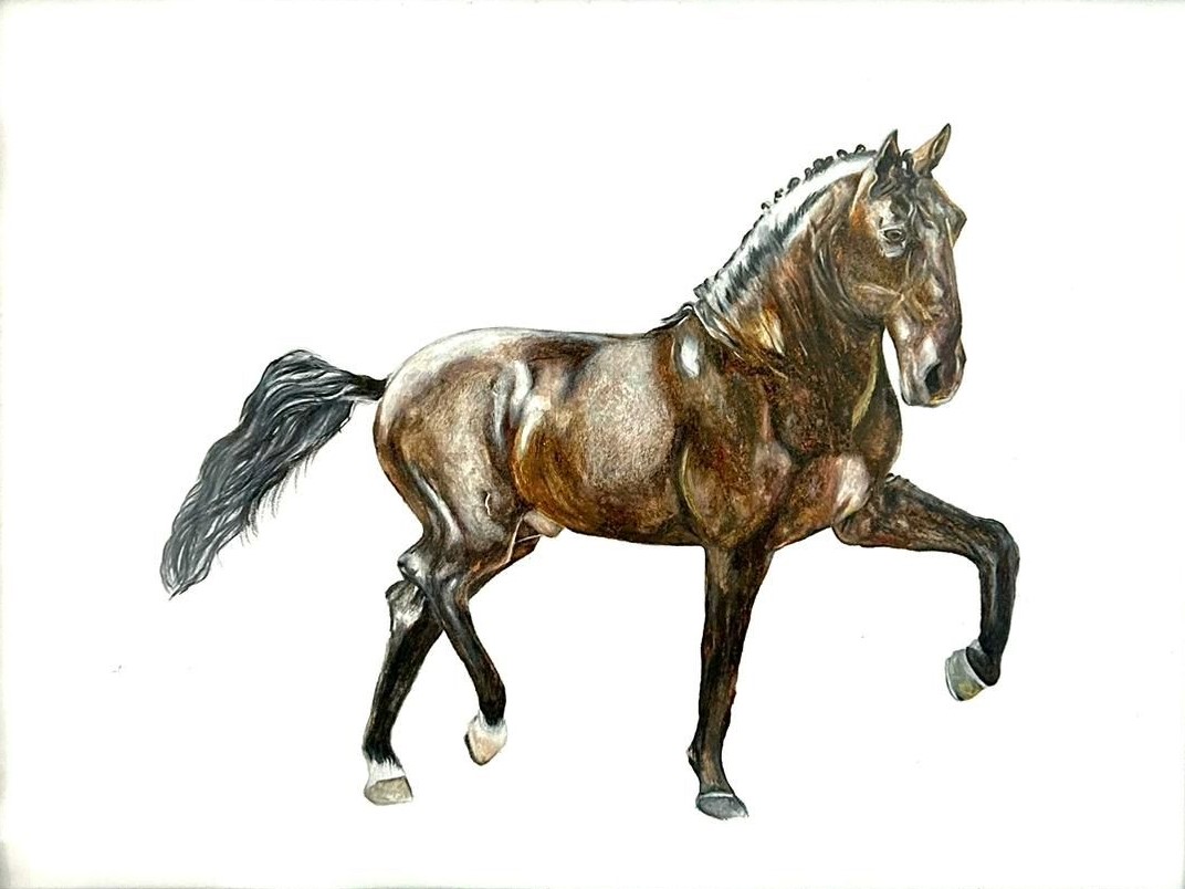 Cavalo de raça Puro sangue lusitano, lápis de cor e aguarela sobre papel A3