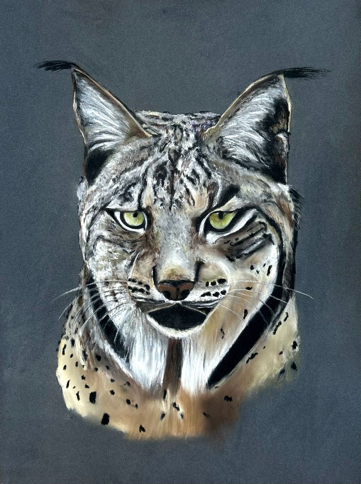 Lince Ibérico, pasteis secos e lápis pastel sobre papel pastelmat N6 A3