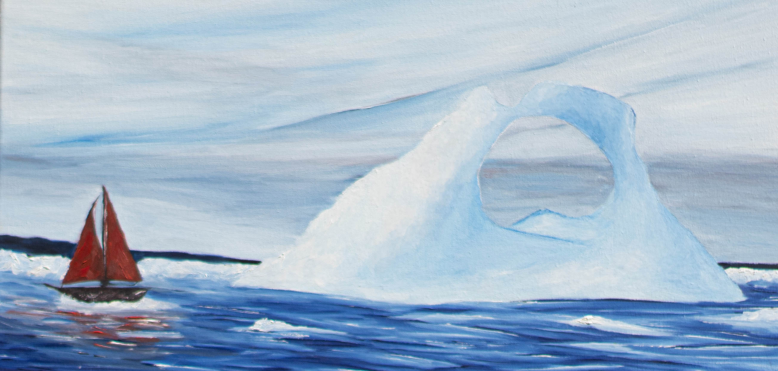 Barco a vela na groenlândia, óleo sobre tela de algodão 60x30cm 280gm