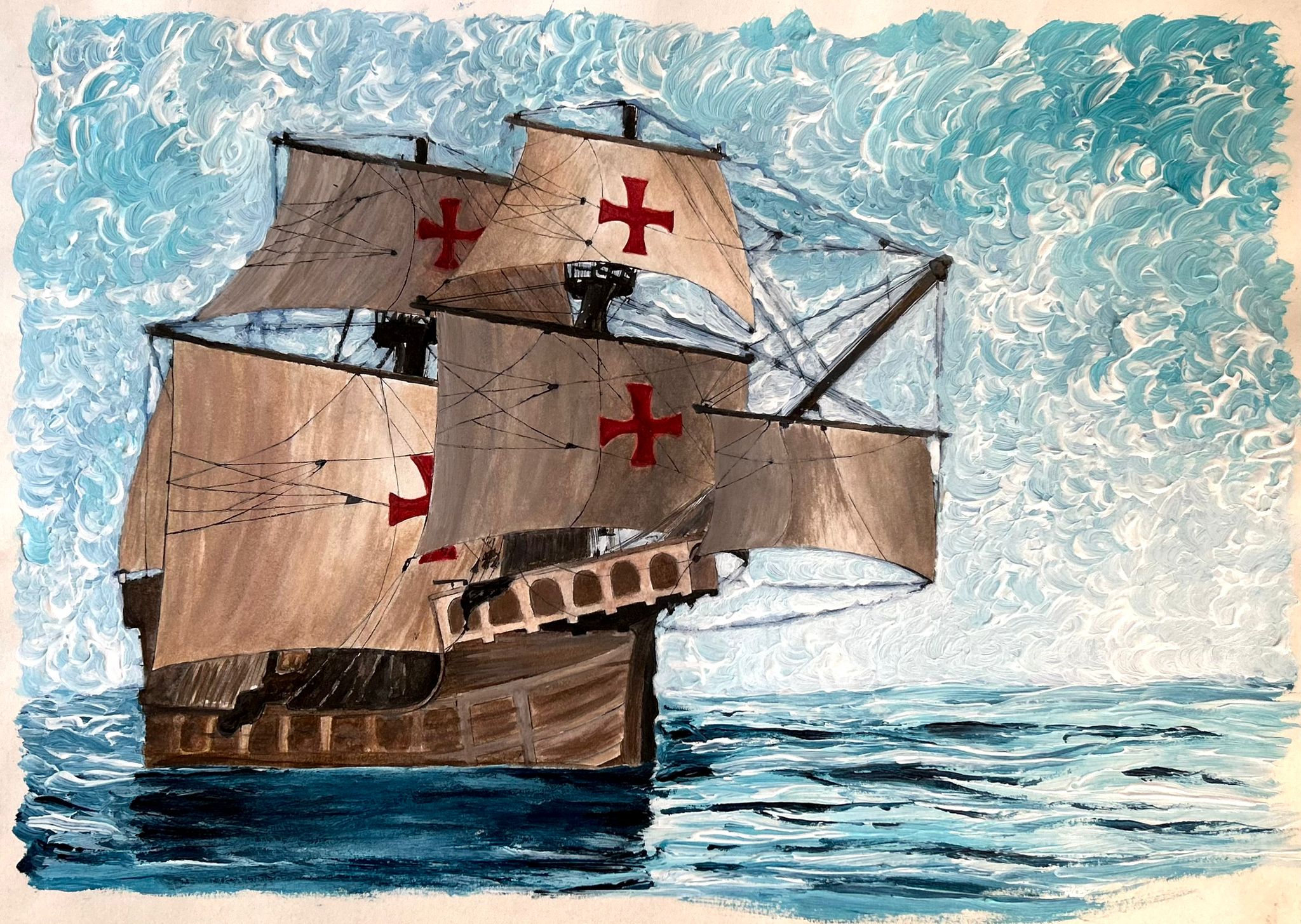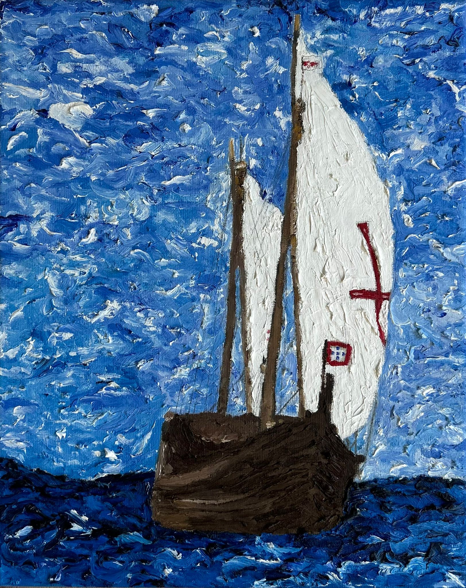 Caravela, A minha primeira pintura a óleo. Óleo sobre tela de algodão 280gm 30x25cm