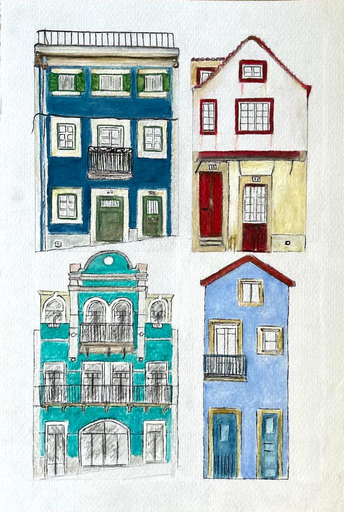 Prédios portugueses, aguarela sobre papel grão fino 180gm A4
