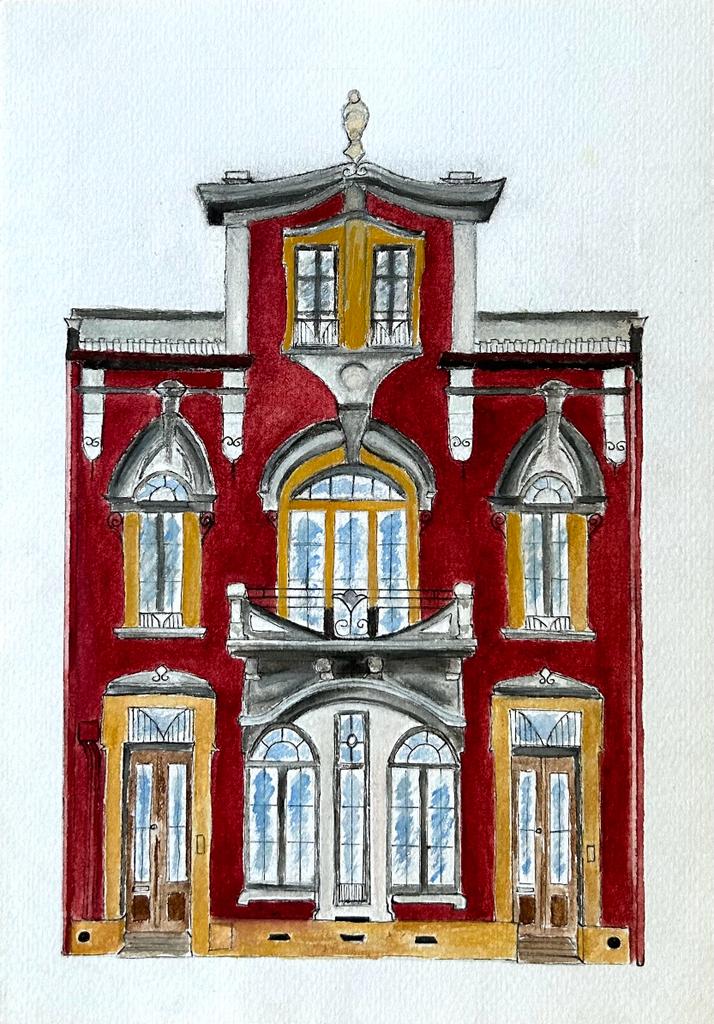 Um prédio português, aguarela sobre papel grão fino 180gm A4