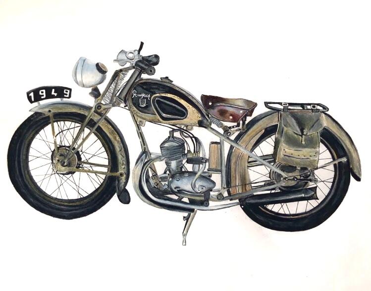 Uma mota que vi em Viseu, Lápis de cor, aguarela e canetas sobre papel A3