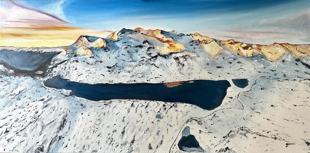 Lago Bianco Suica, óleo sobre tela de algodão 280gm 50x100 cm