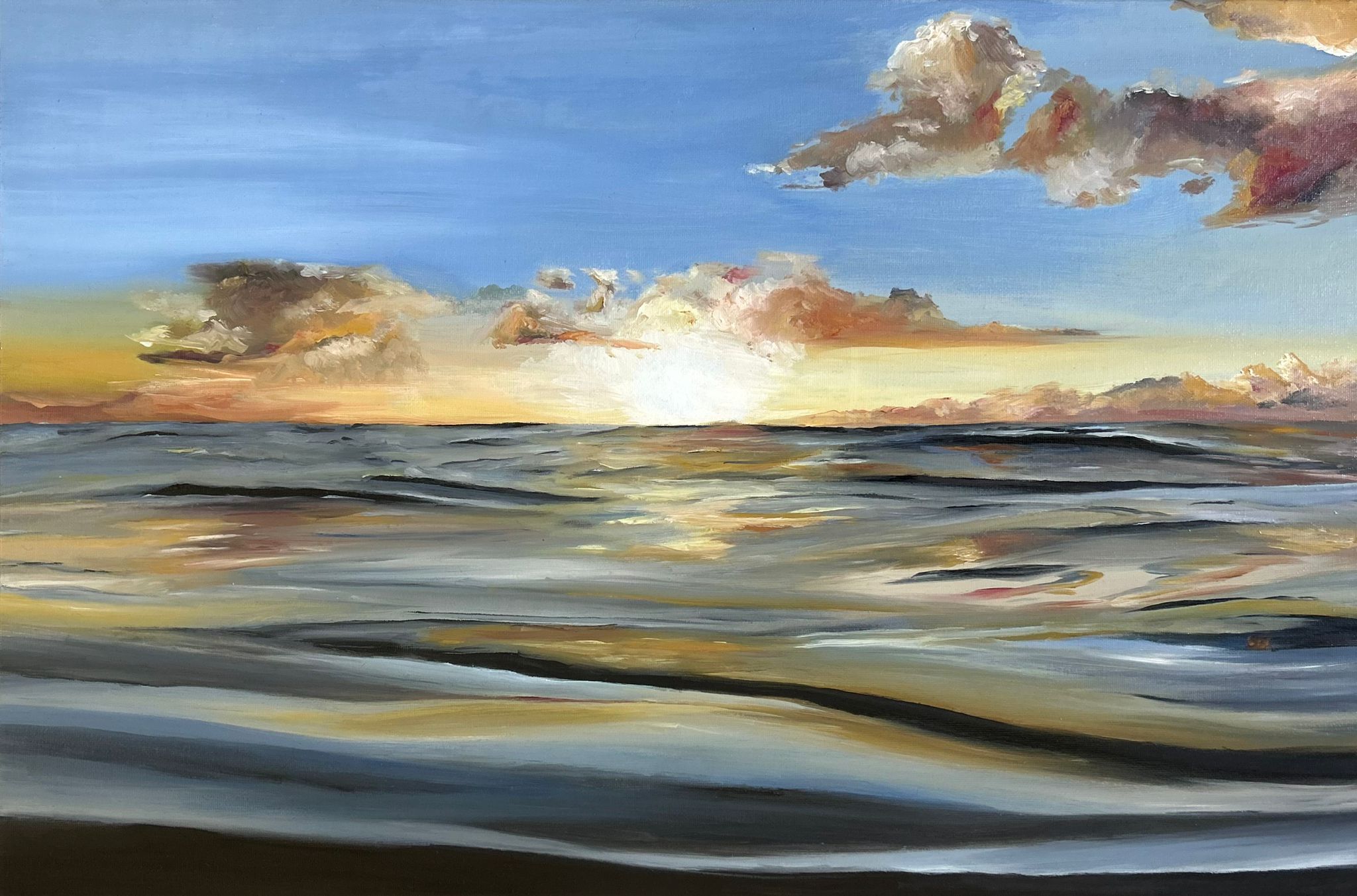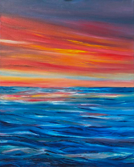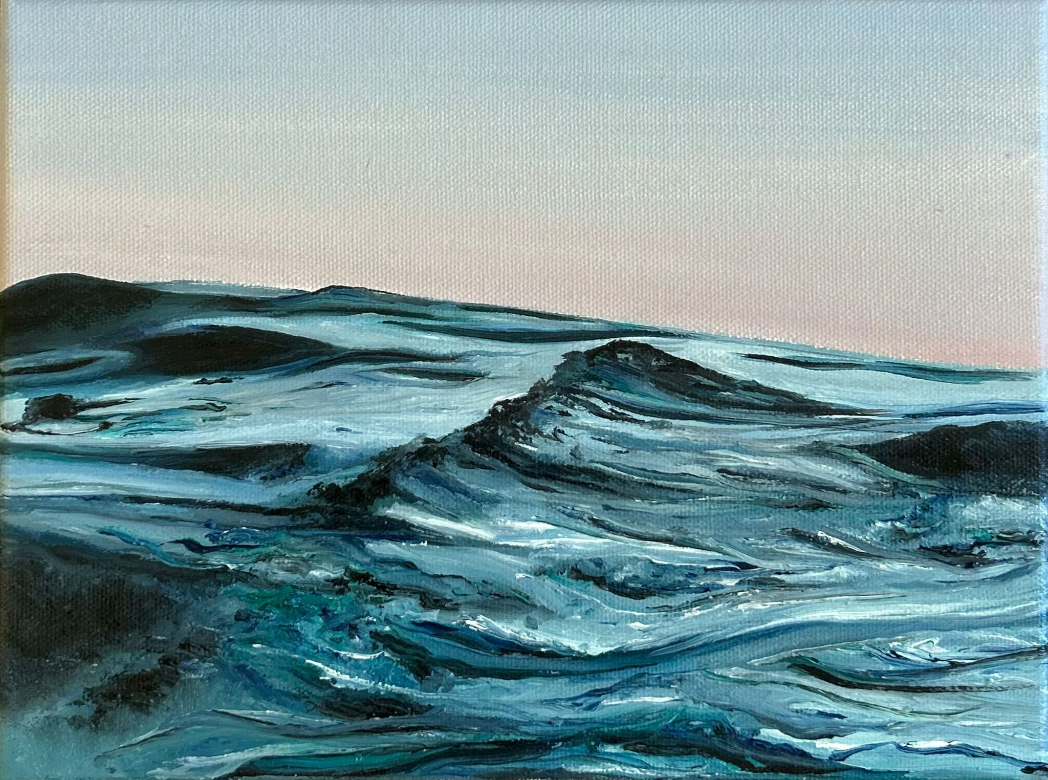 No meio do mar, óleo sobre tela de algodão premium 370gm 18x24cm