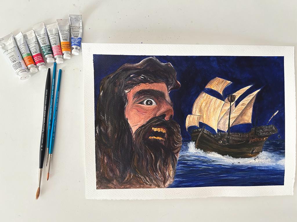 Watercolor competition on 100% cotton sheet 300gm coarse grain W&N. My inspiration was Canto V - O Gigante Adamastor - from the work "Os Lusiadas" by Luís Vaz de Camões2023